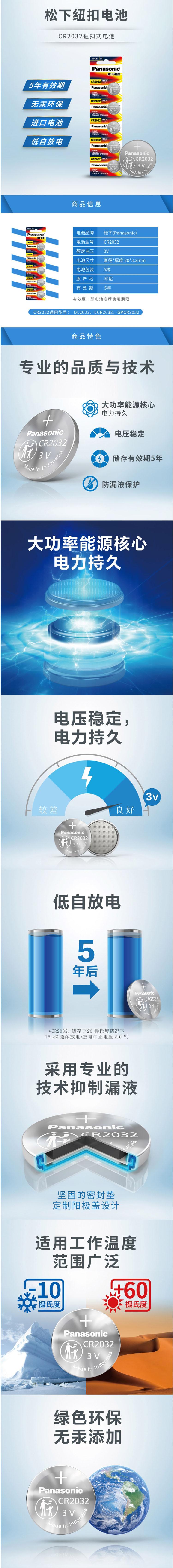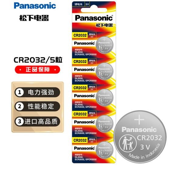 松下(Panasonic)CR2032 電池 進口紐扣電池 3V 5粒裝