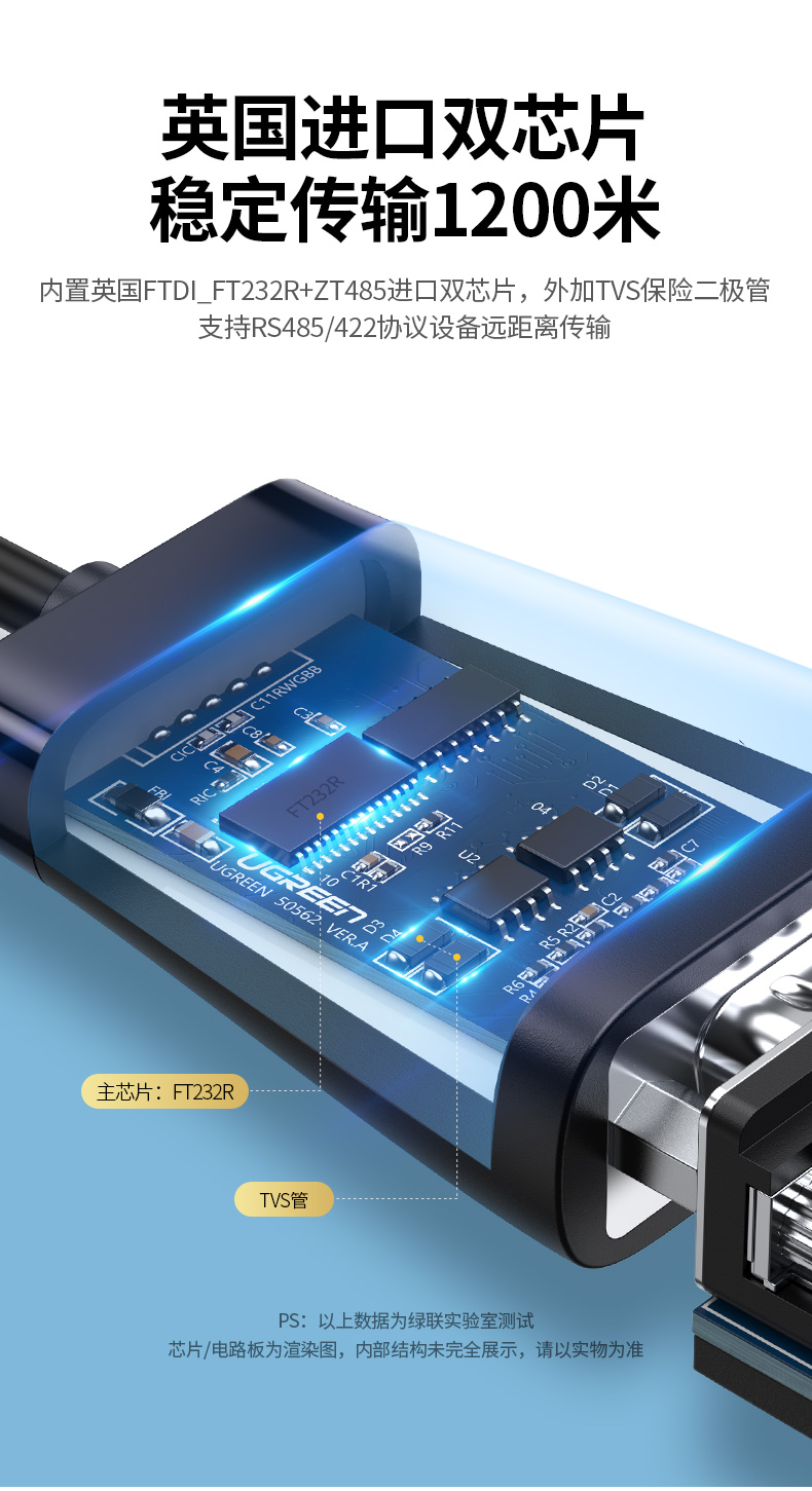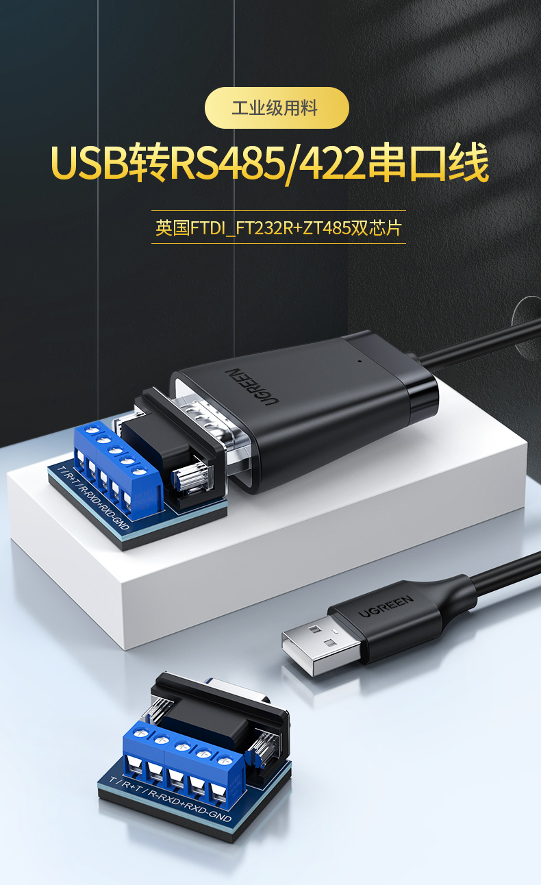 綠聯(lián) USB轉(zhuǎn)RS422/485轉(zhuǎn)換器 九針串口數(shù)據(jù)線電腦com口通信線轉(zhuǎn)接線 工業(yè)級(jí)FT232芯片 USB轉(zhuǎn)RS485/422串口線 0.5m