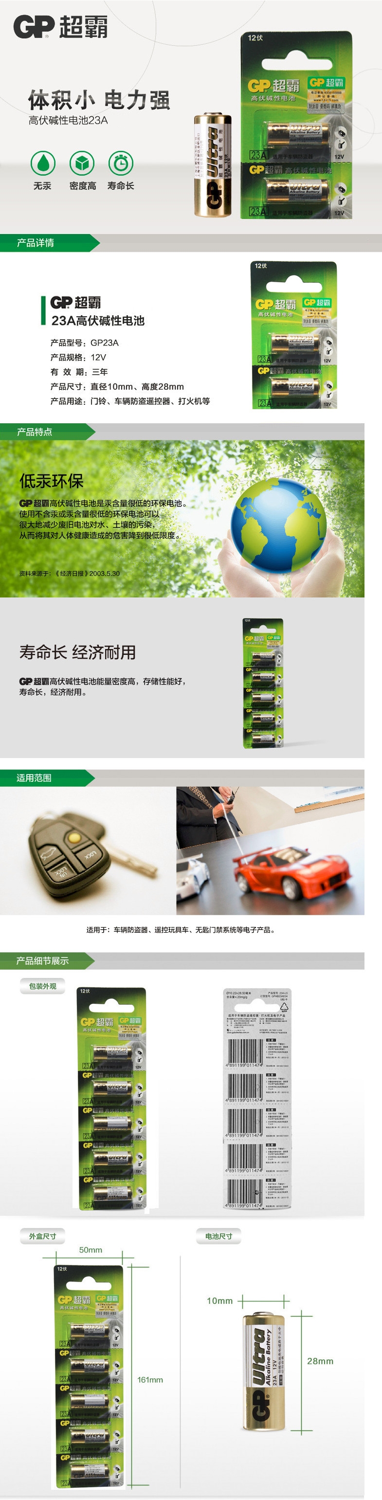 超霸 23A 大門(mén)遙控電池 12V (計(jì)價(jià)單位:節(jié))