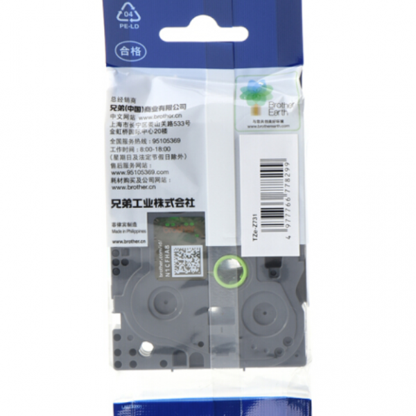 兄弟(brother)TZe-Z731 12mm綠底黑字標(biāo)簽色帶