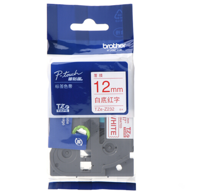 兄弟(brother)TZe-Z232 12mm白底紅字標(biāo)簽色帶