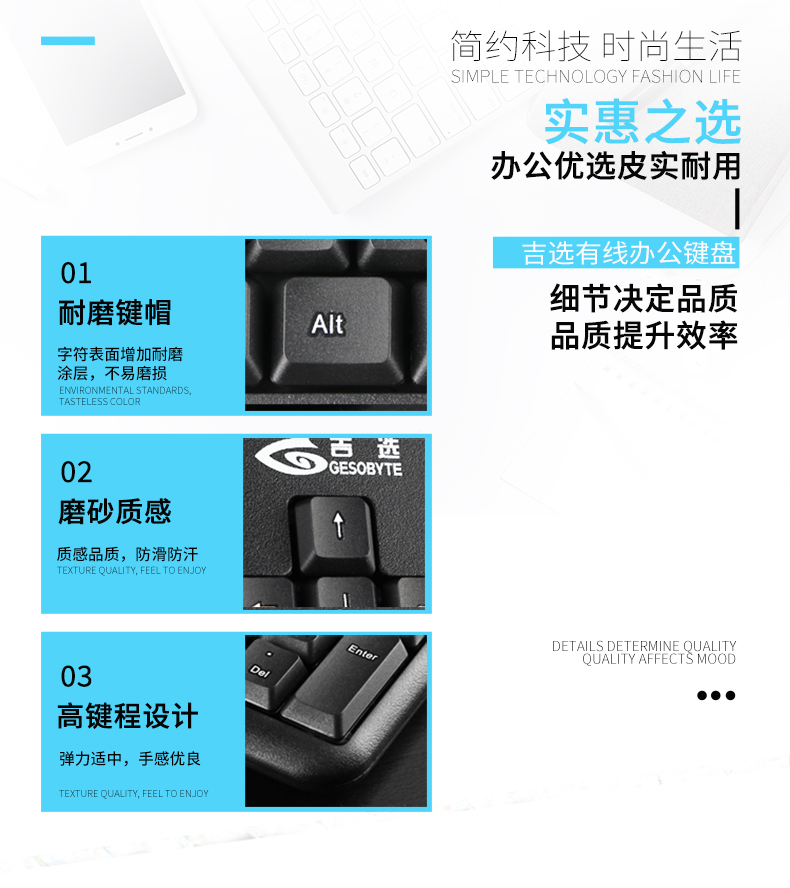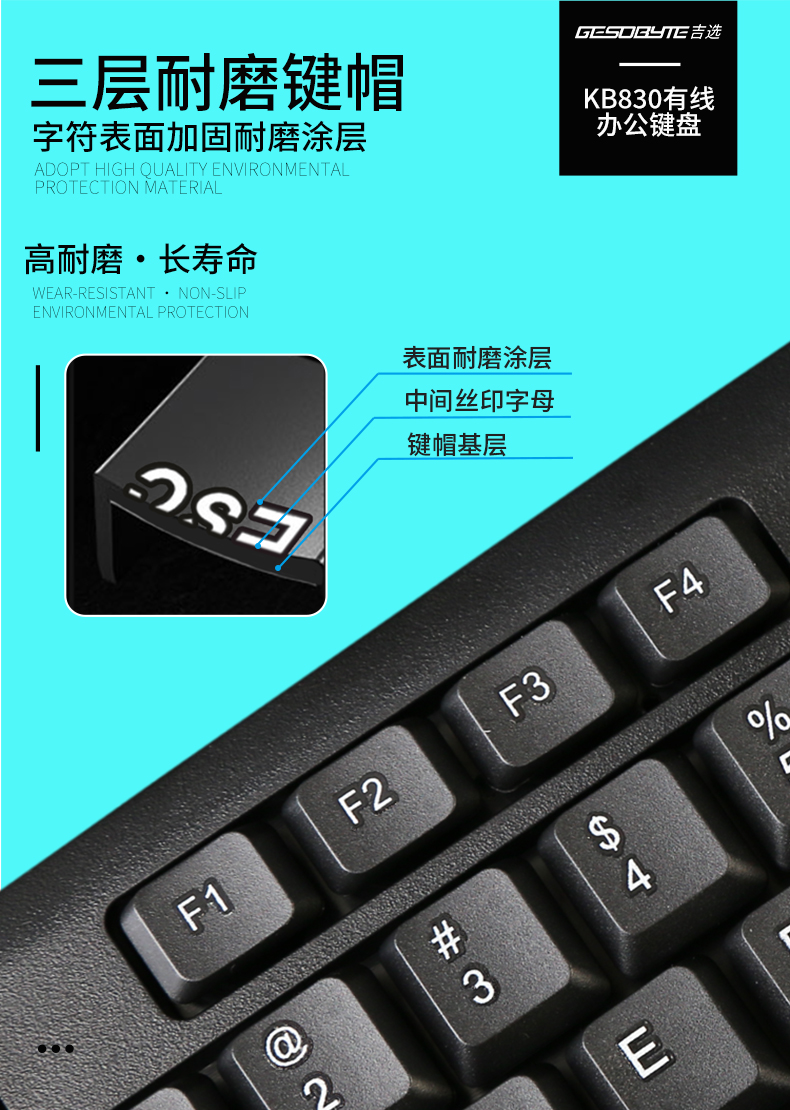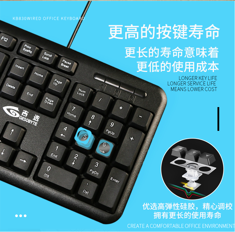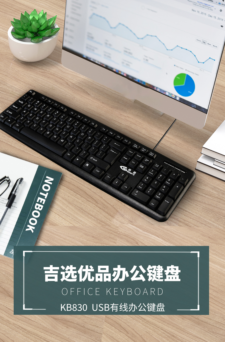 吉選(GESOBYTE)KB830USB鍵盤有線辦公鍵盤 防潑水 筆記本環(huán)靜電腦通用104低噪音按鍵 企業(yè)集采 可開專票 黑