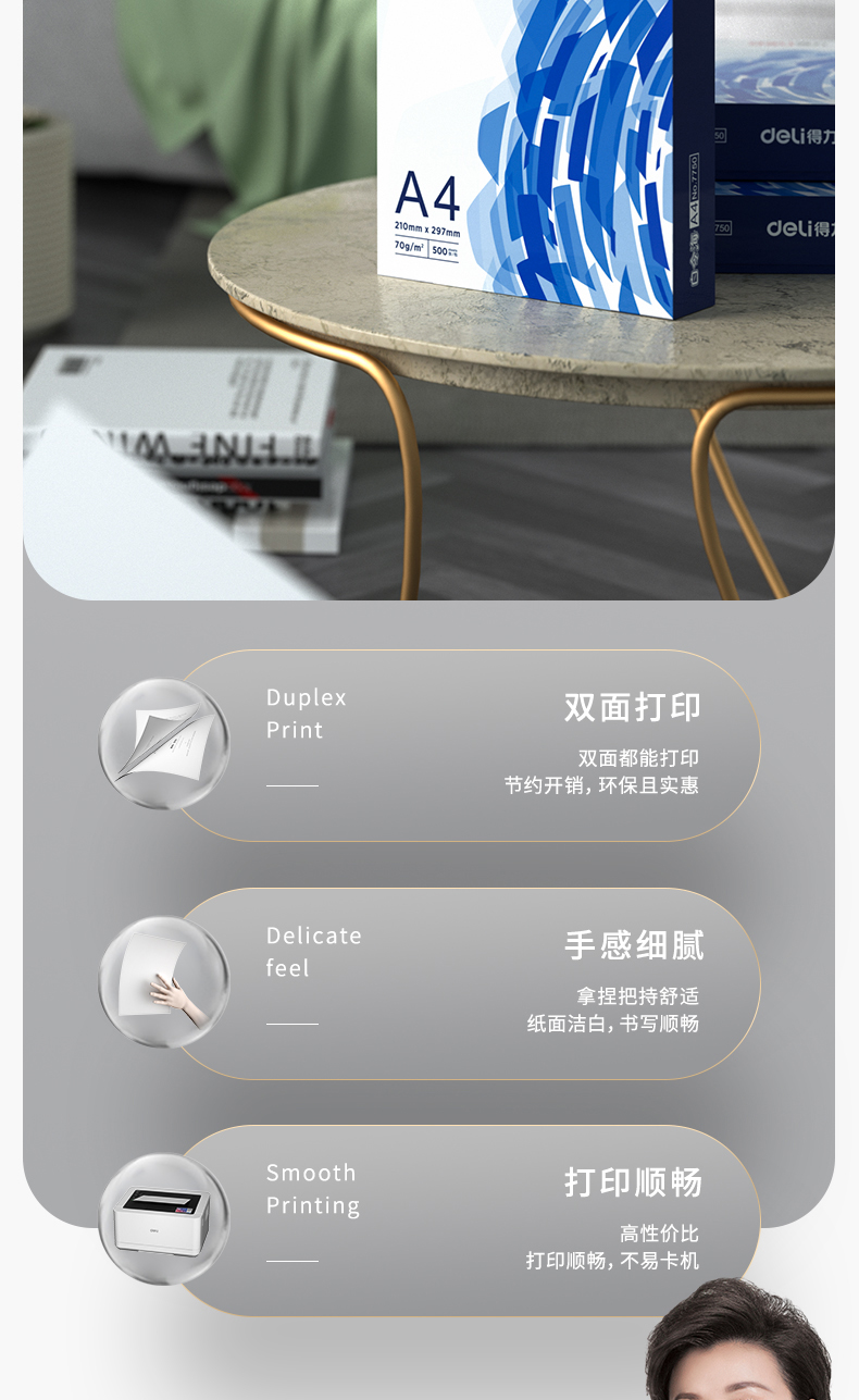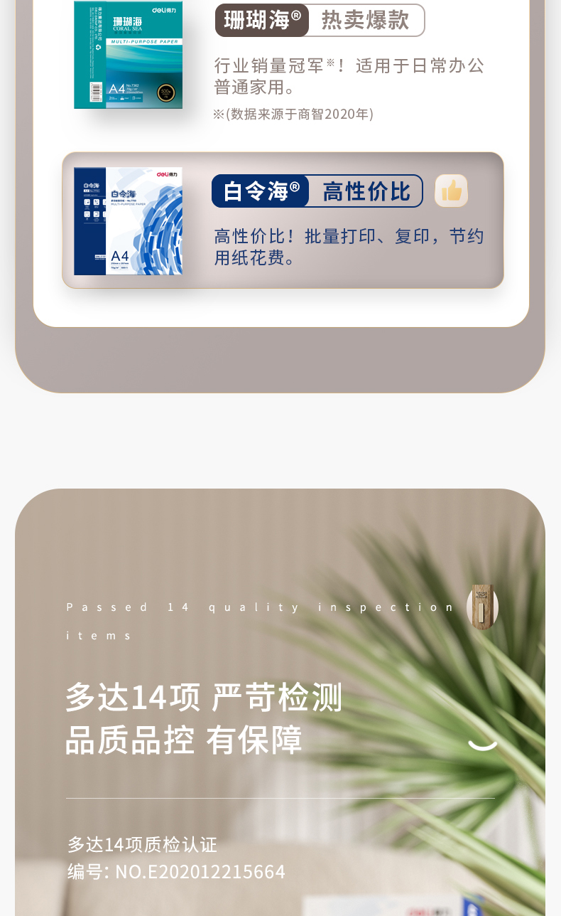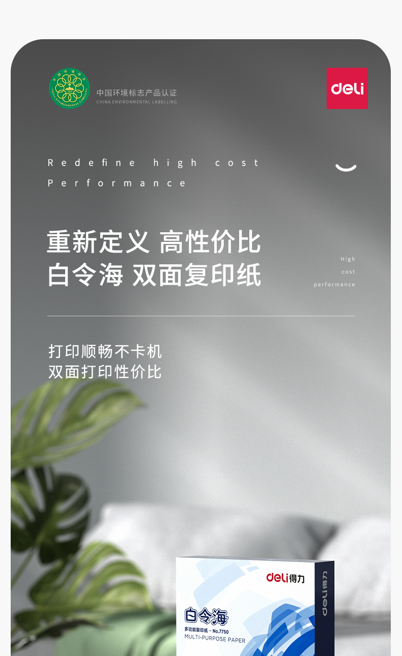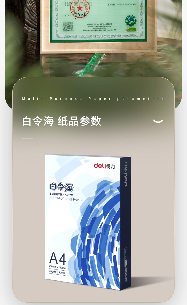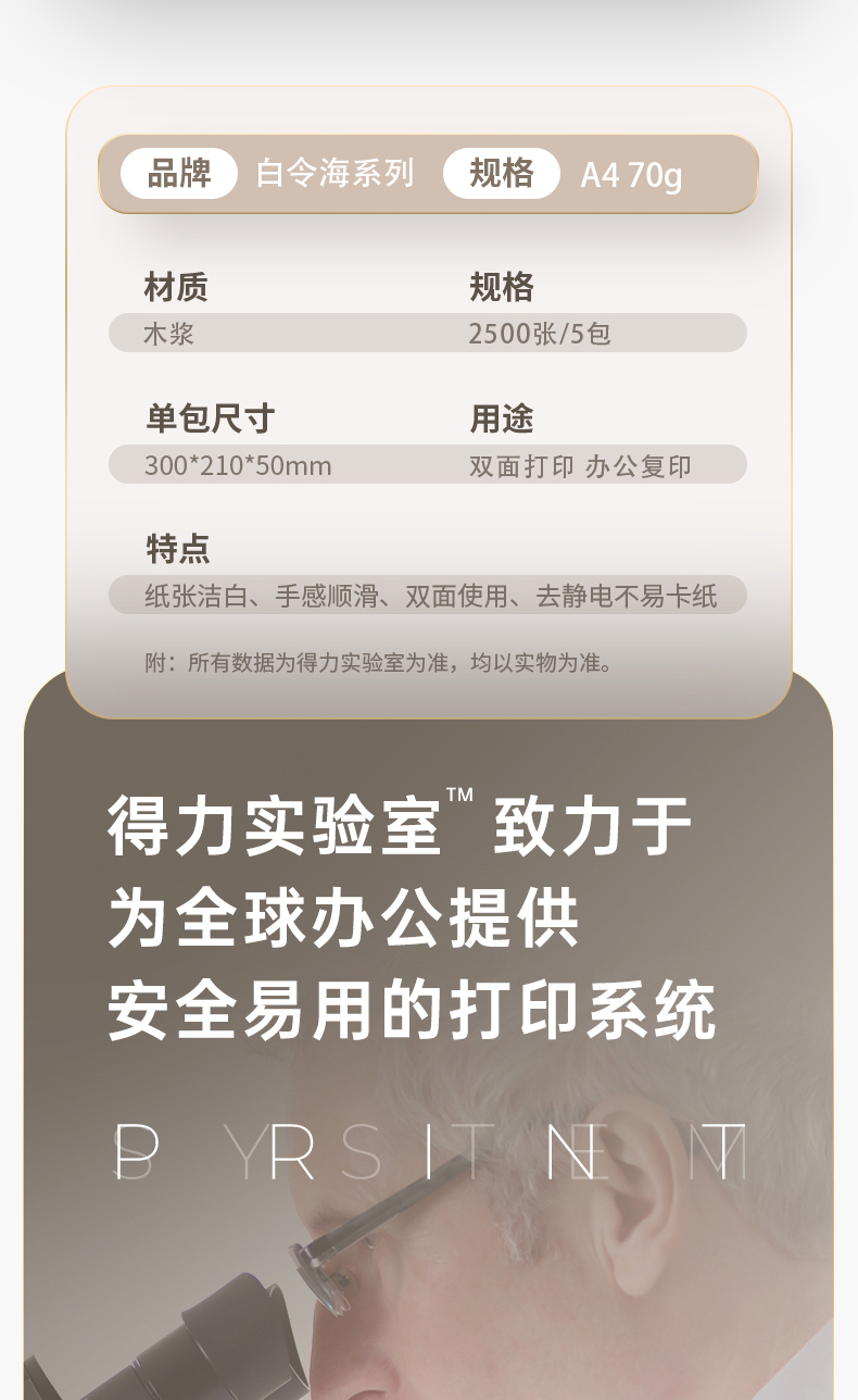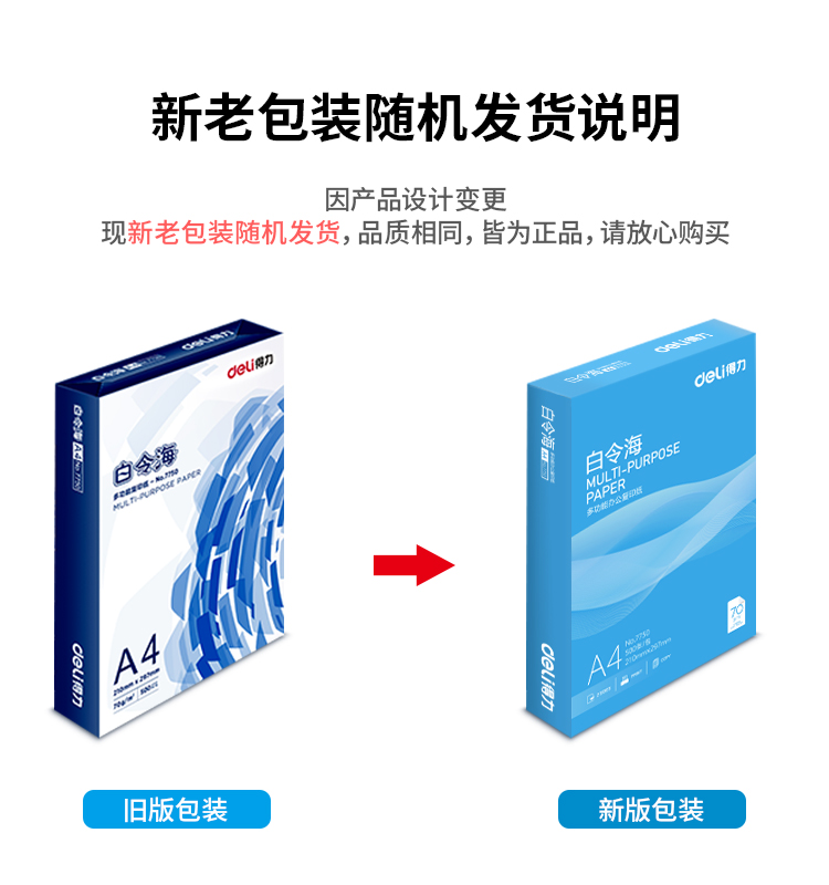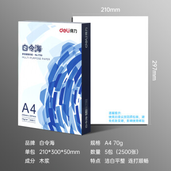 得力(deli)白令海 A4 70g 雙面打印紙 高性?xún)r(jià)比復(fù)印紙 草稿紙 500張/包 5包1箱(整箱2500張)