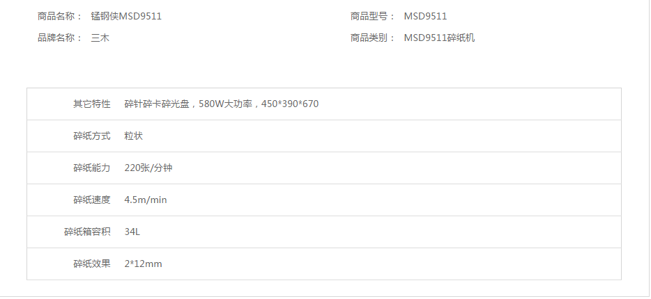 三木 錳鋼俠MSD9331碎紙機(jī) MSD9331