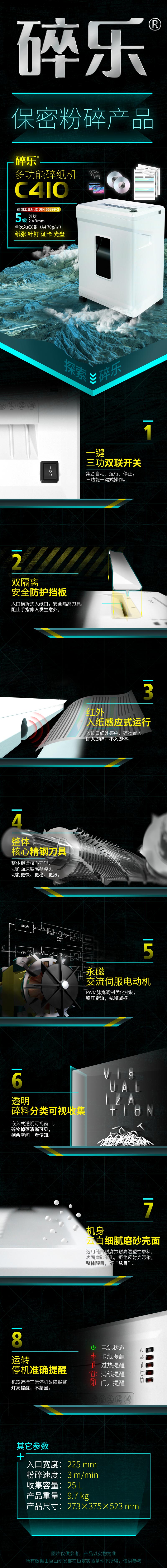 碎樂(Ceiro) C410 5級保密多功能碎紙機 高速靜音 可碎卡/光盤/書釘