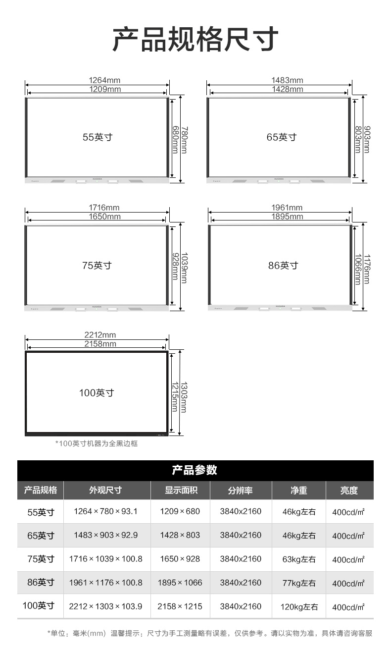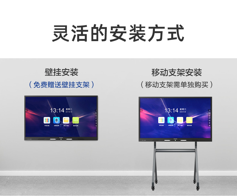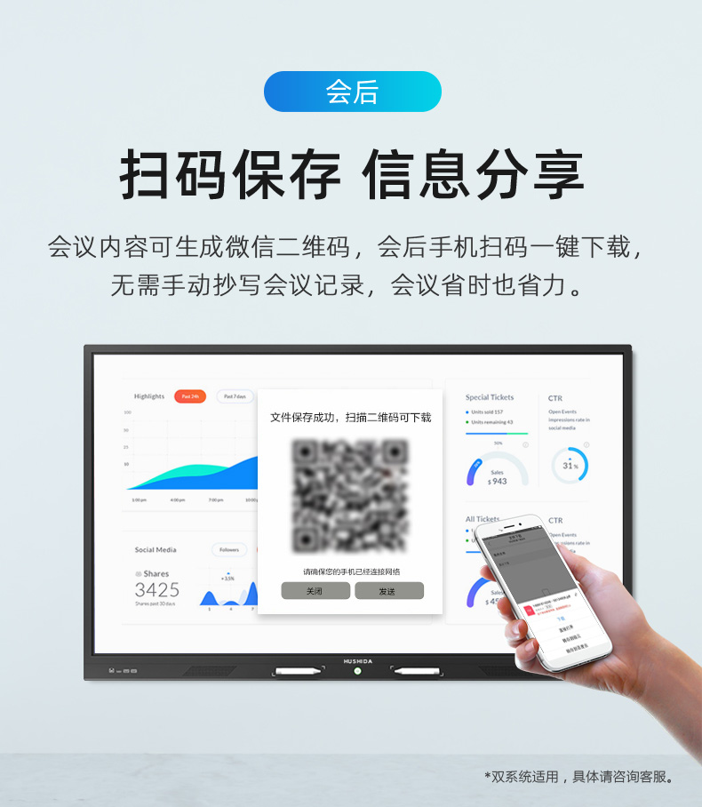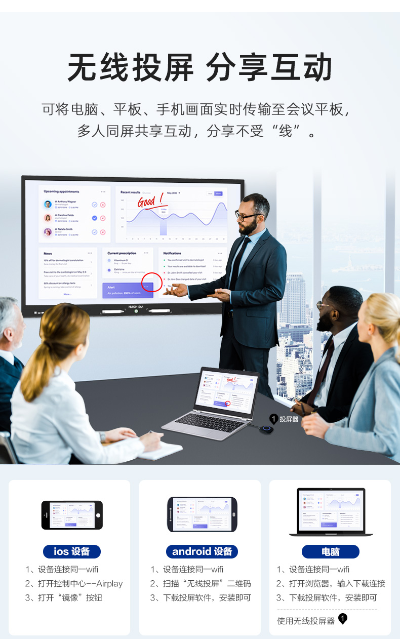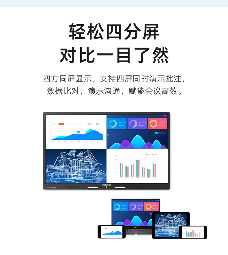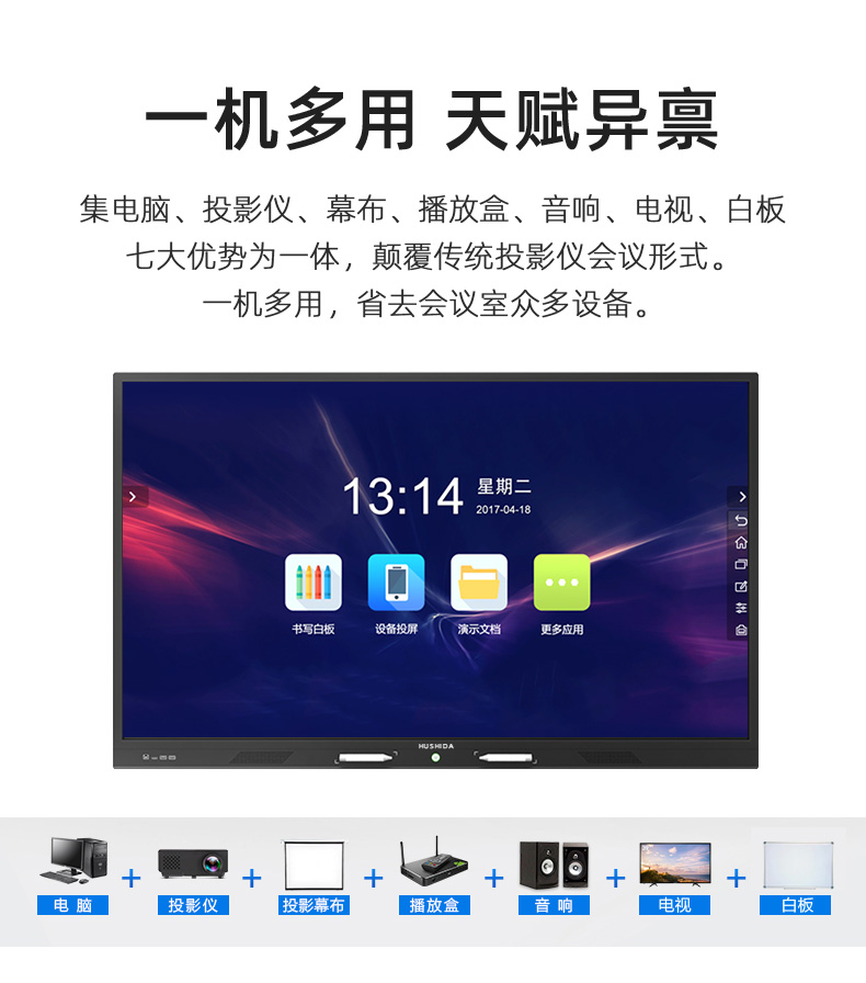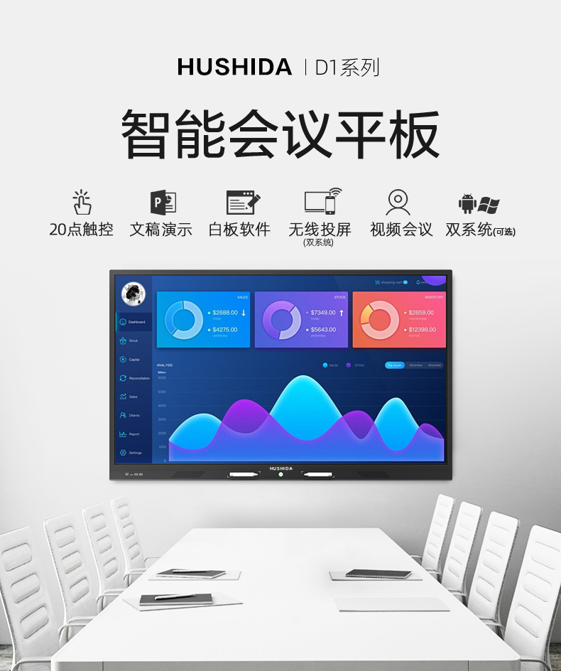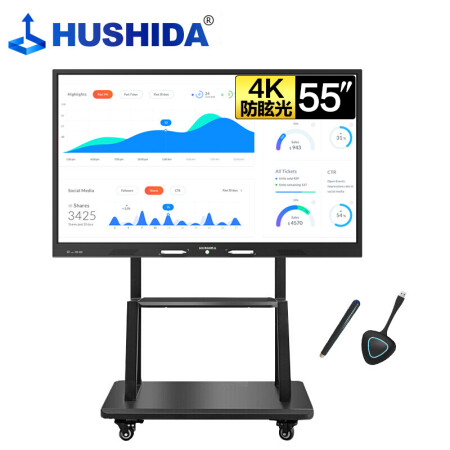 互視達(HUSHIDA)55英寸會議平板電子白板多媒體教學辦公一體機觸摸顯示智慧大屏4K(安卓+投屏器+支架)
