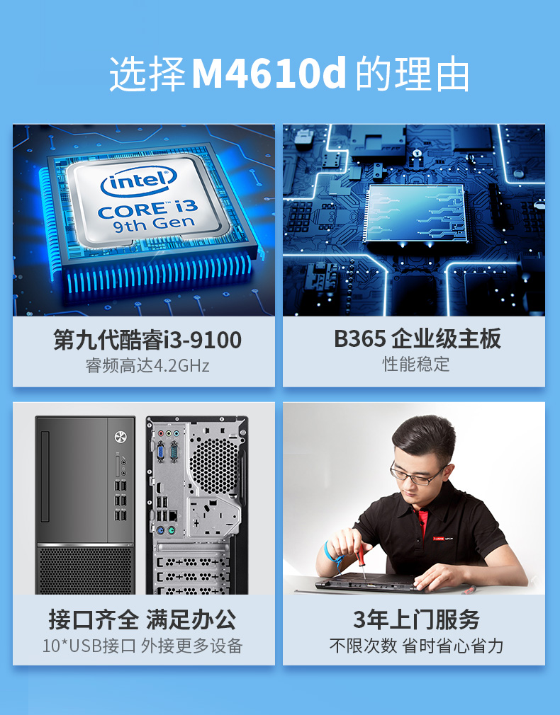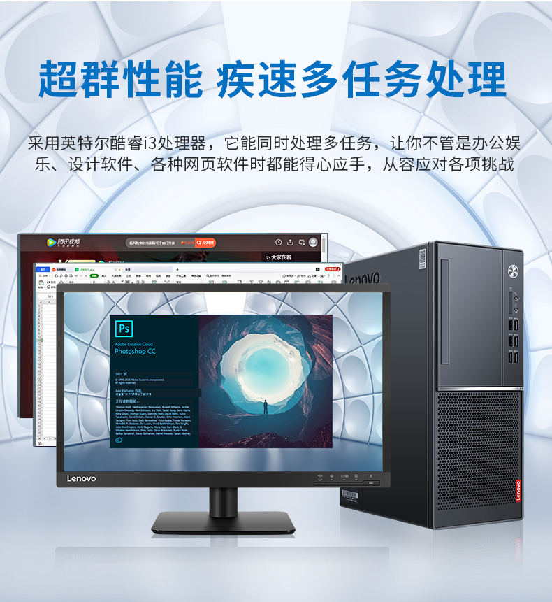 聯(lián)想 Lenovo 揚天M4610d 英特爾酷睿九代i3四核 網(wǎng)課家用商務辦公臺式電腦整機 21.5英寸全高清屏