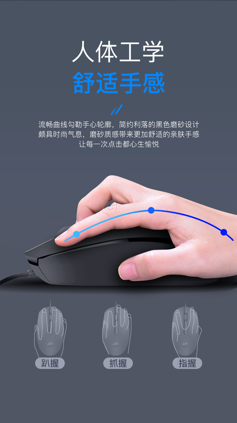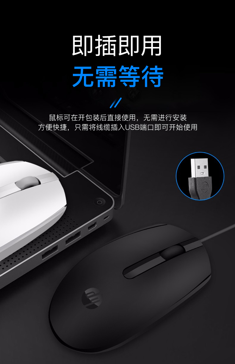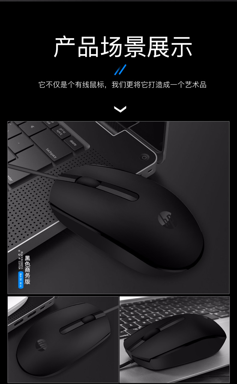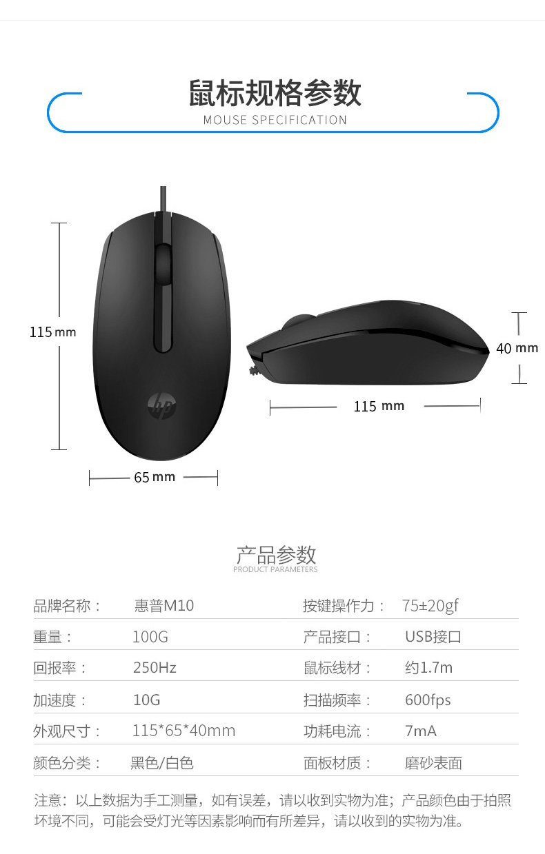 惠普(HP)M10鼠標(biāo) 有線鼠標(biāo) 商務(wù)辦公男女生通用USB接口即插即用無(wú)需驅(qū)動(dòng)人體工學(xué)有線鼠標(biāo) 黑色