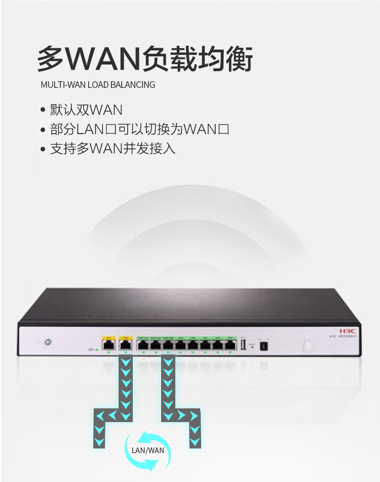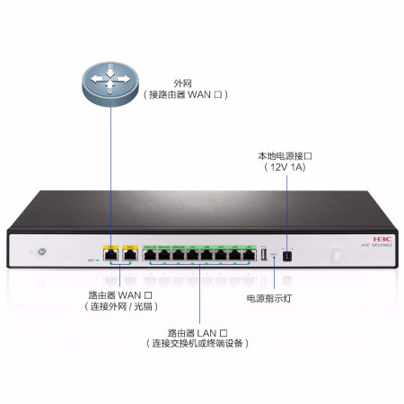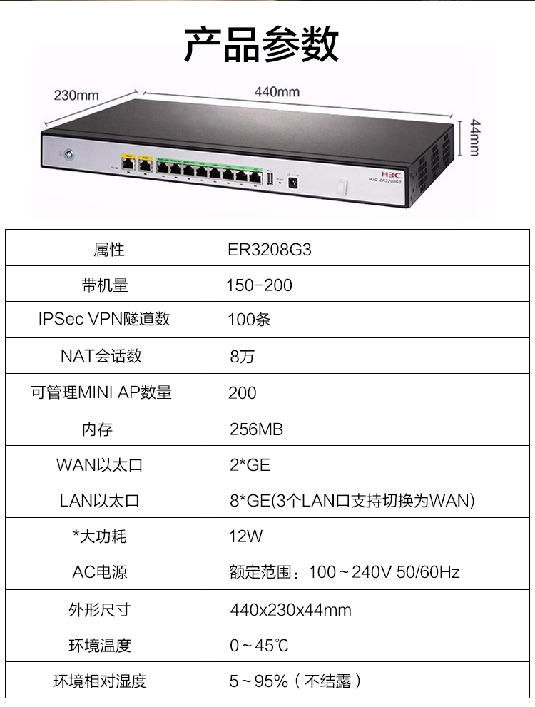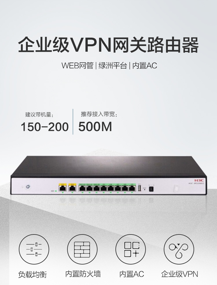 新華三(H3C)ER3208G3 雙WAN+8LAN千兆有線路由器企業(yè)級 帶機150-200 VLAN劃分/圖形化界面/上網(wǎng)行為管理