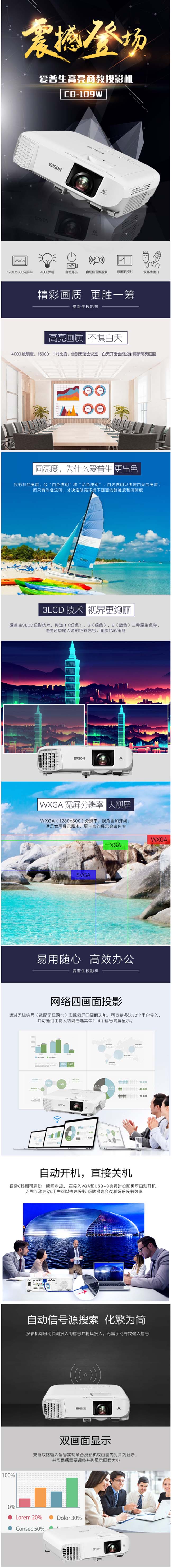 愛普生(EPSON)CB-109W 投影儀 投影機(jī) 商用 辦公 會(huì)議 (高清 4000流明 雙HDMI接口 支持手機(jī)同步 含安裝)