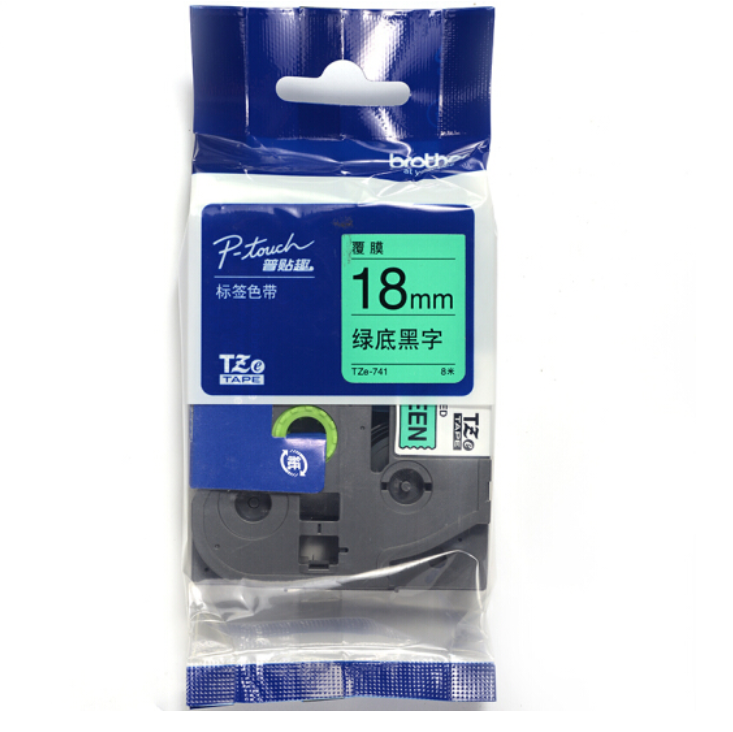 兄弟(brother) TZe-741 18mm綠底黑字標(biāo)簽色帶