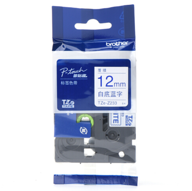 兄弟(brother)TZe-Z233 12mm白底藍(lán)字標(biāo)簽色帶