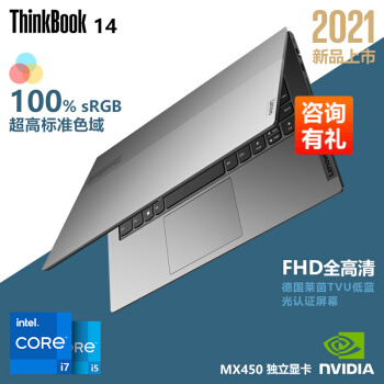 聯(lián)想ThinkBook 14 2021款 14英寸輕薄筆記本電腦 【08CD】 11代酷睿i7-1165G7 獨顯 16G 512G 100%sRGB 高色域 標(biāo)配