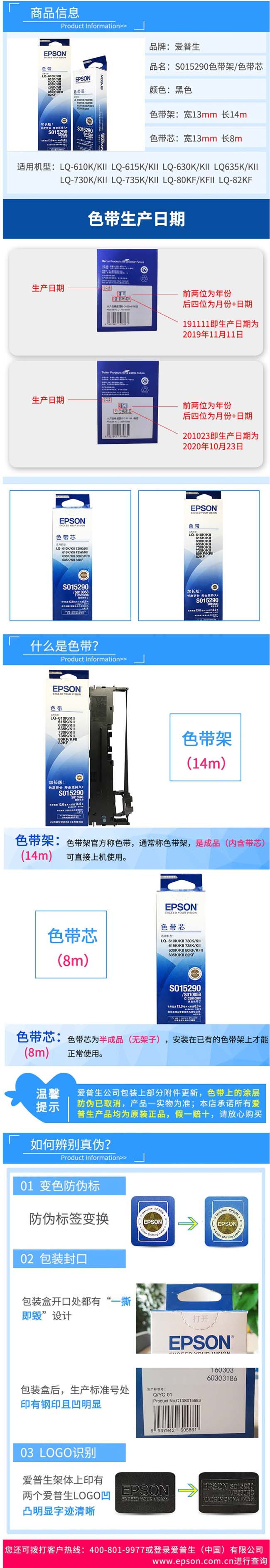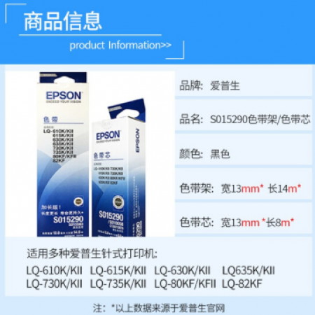 愛(ài)普生(Epson)S015290原裝色帶LQ-615KII 610K 635K 730K 630K 1支色帶架(含芯)
