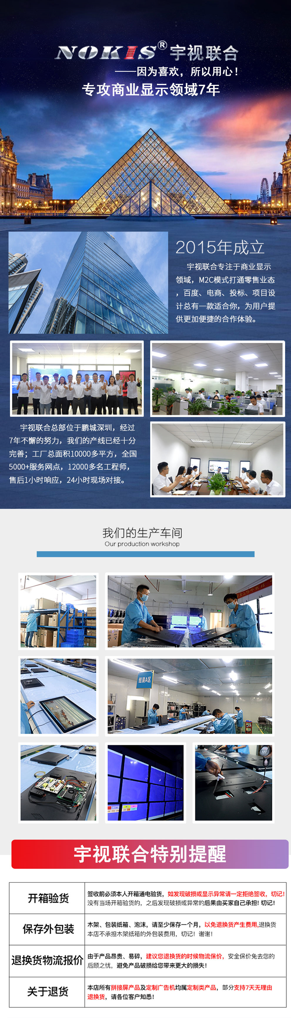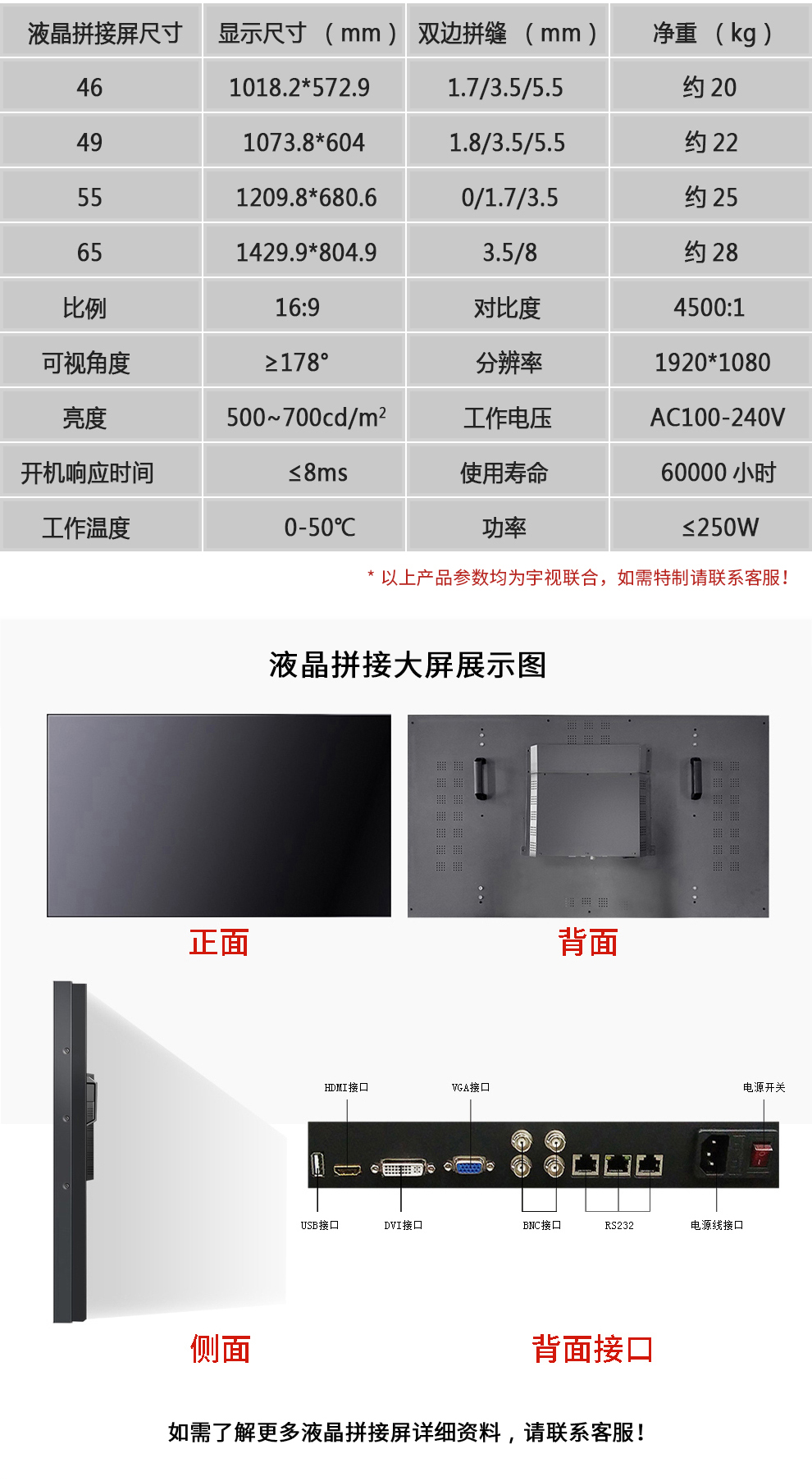 宇視聯(lián)合 三星LG京東方液晶拼接屏55英寸監(jiān)控顯示器會(huì)議室大屏幕led無縫電視墻舞臺直播間背景 無縫拼接屏定制(新一代多規(guī)格)