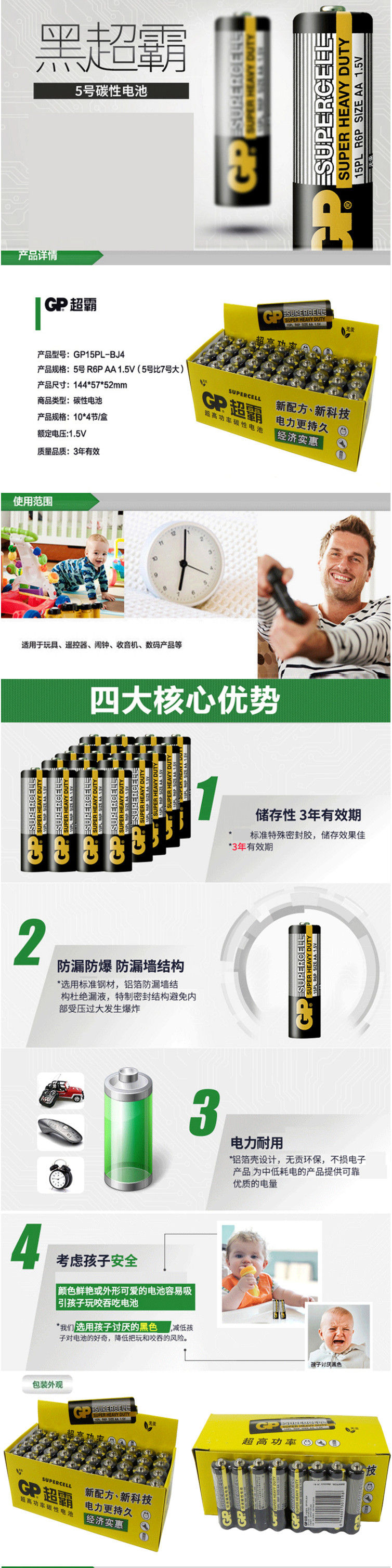 超霸 GP24PL-BJ2 七號(hào)AAA 1.5V 電池 40粒盒裝