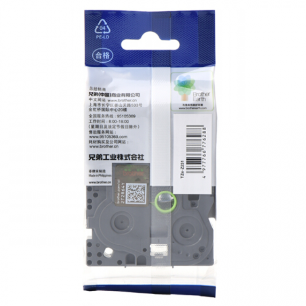 兄弟(brother)TZe-Z231 12mm白底黑字標(biāo)簽色帶