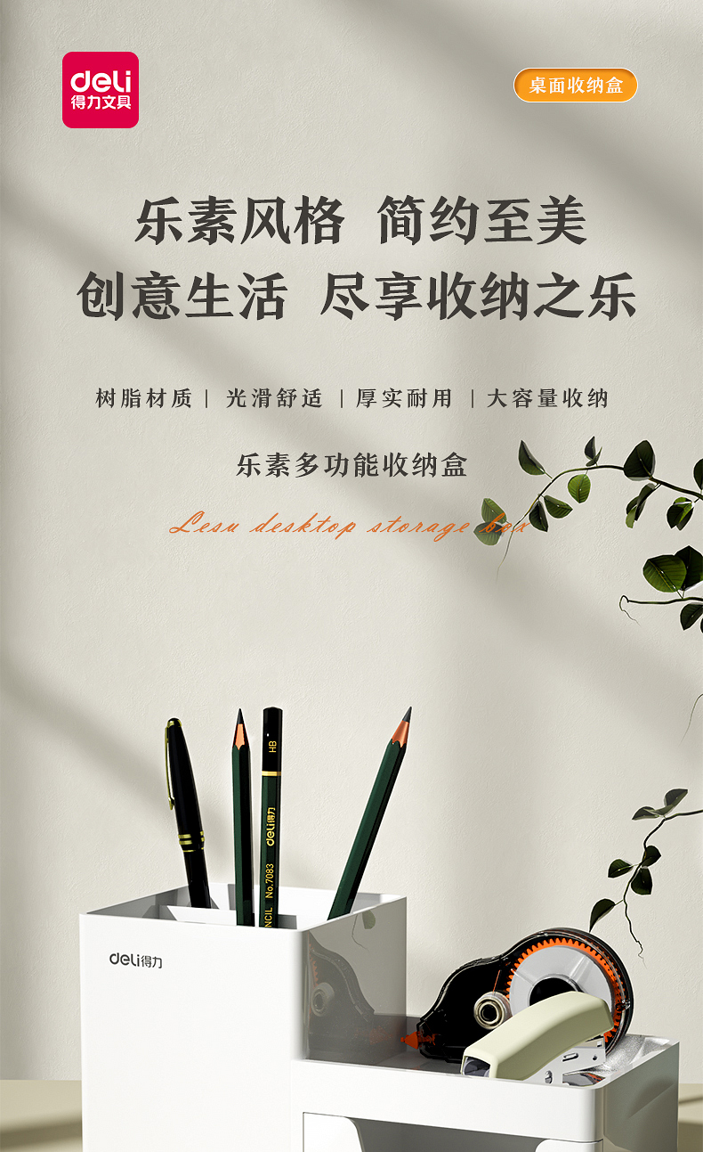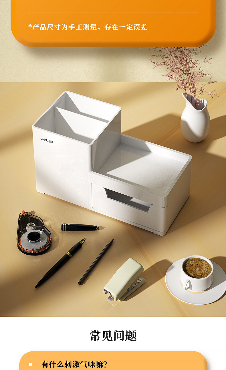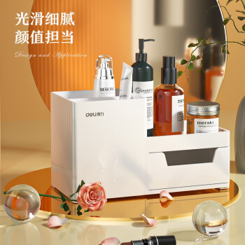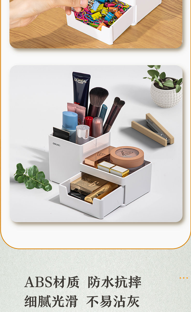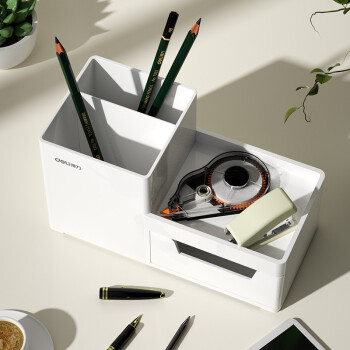 得力 deli 居家文具收納盒 小物件桌面收納盒筆筒 首飾收納盒 桌面儲物盒 美化收納盒 淺白8907