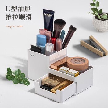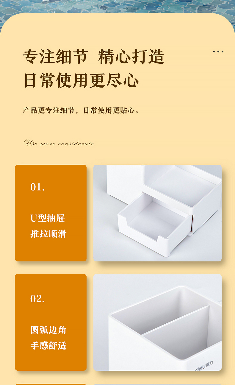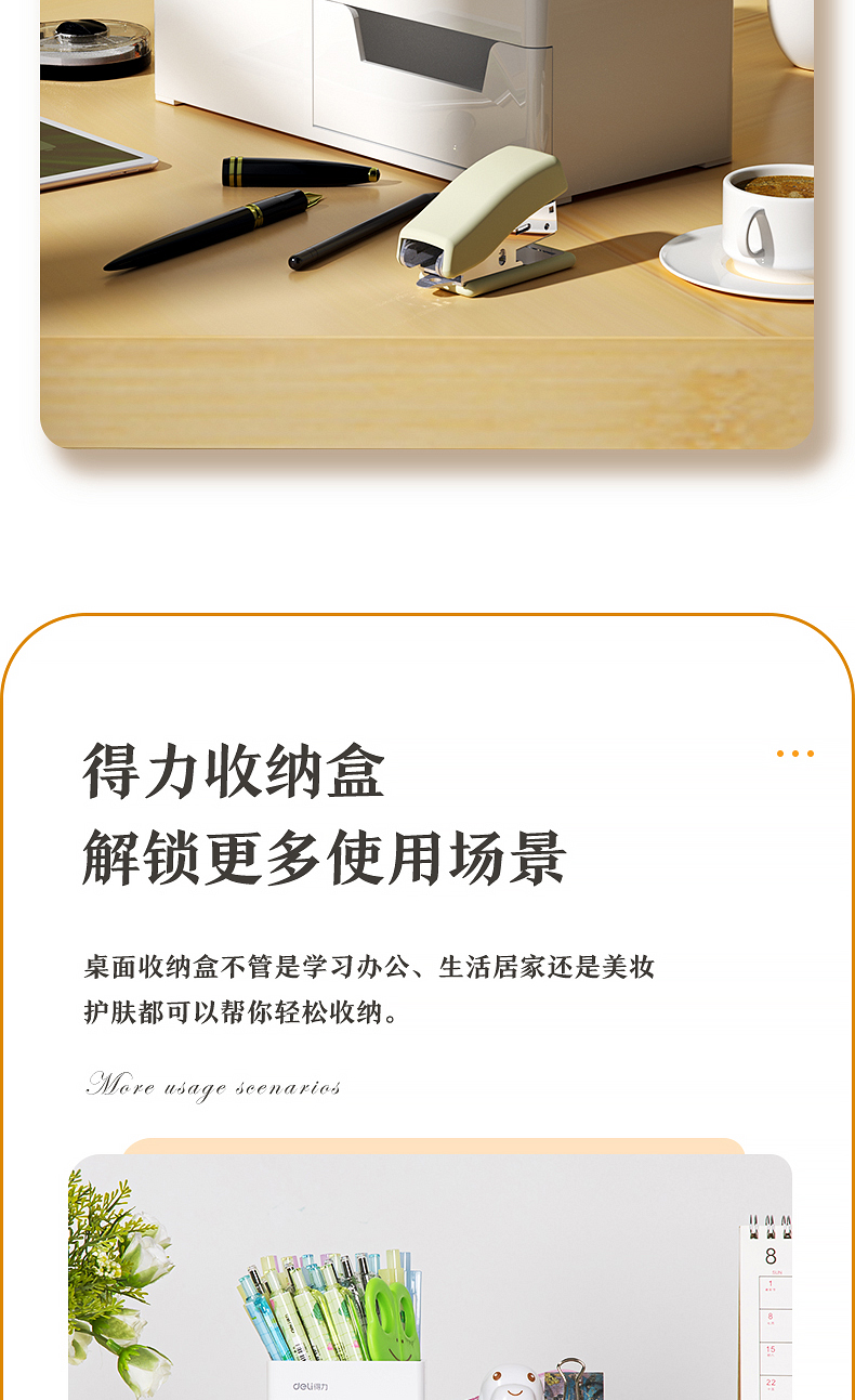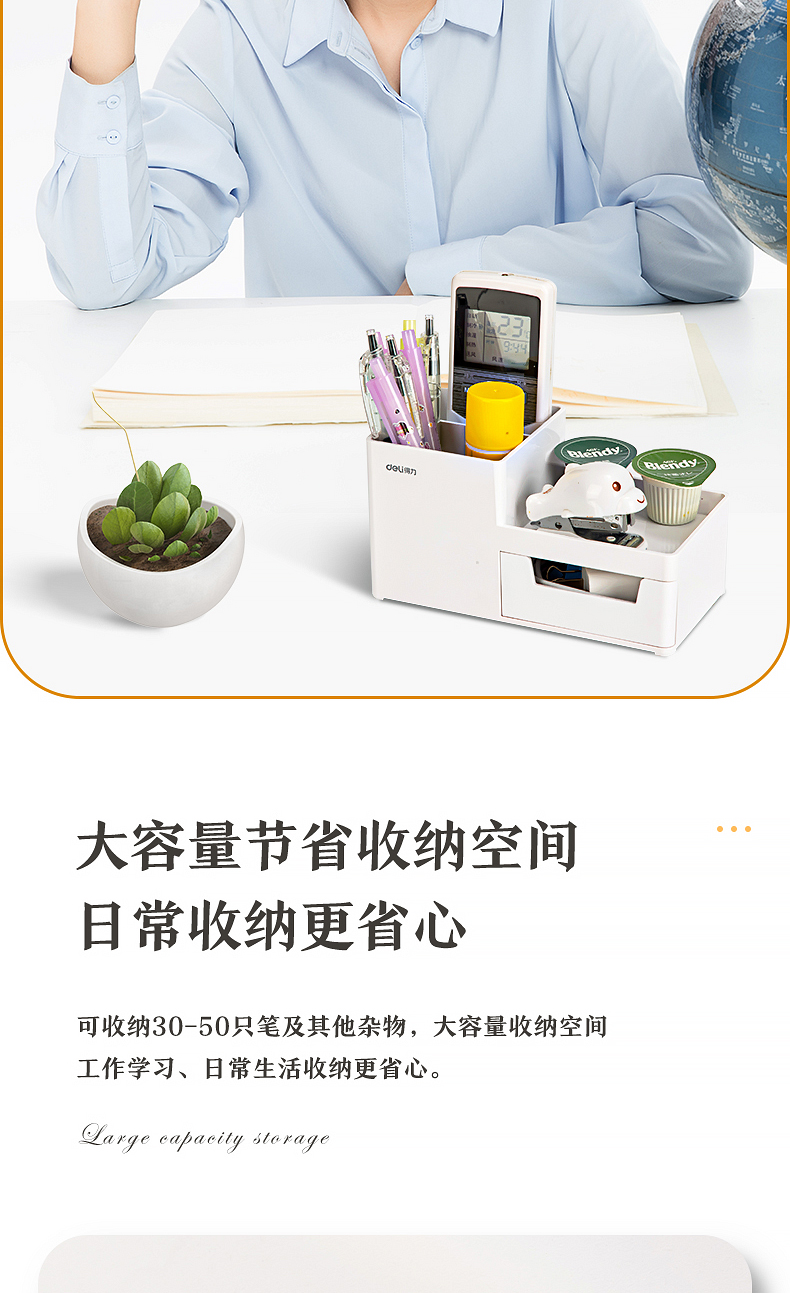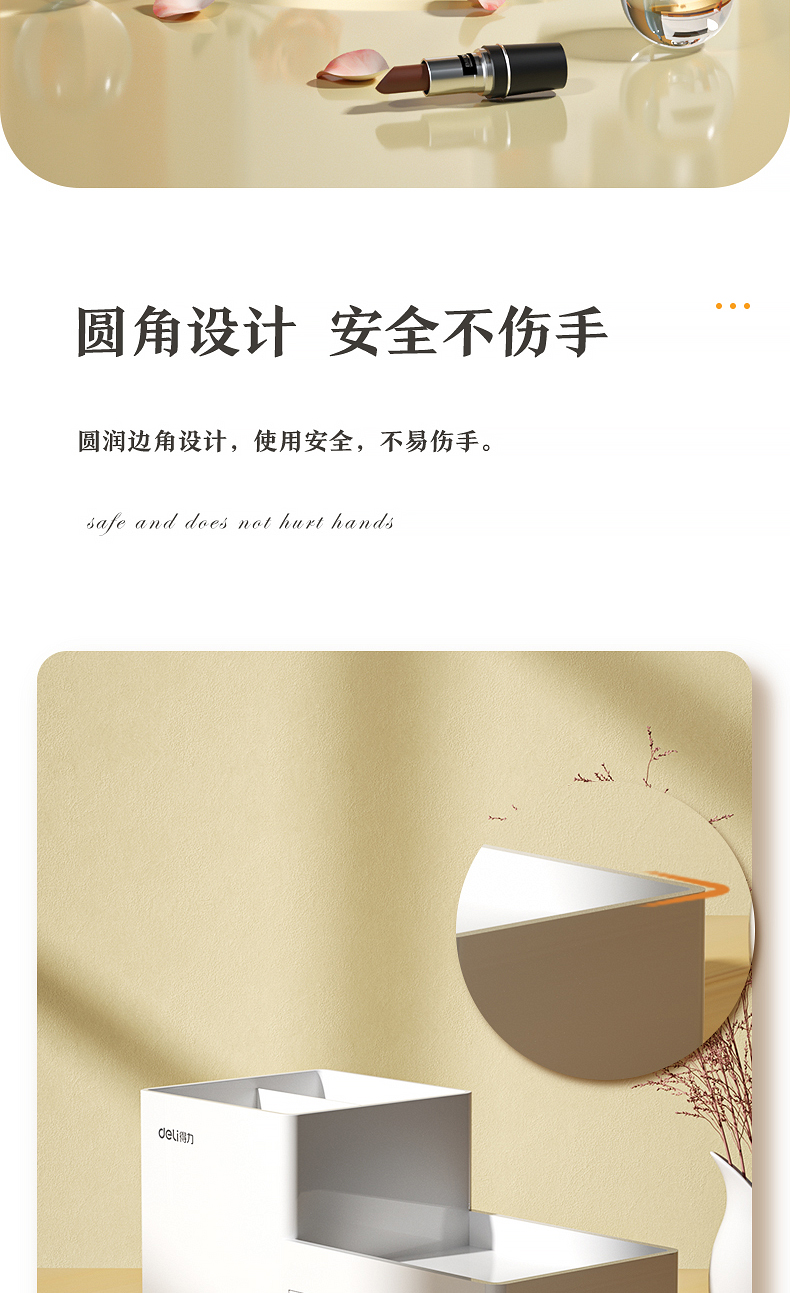 得力 deli 居家文具收納盒 小物件桌面收納盒筆筒 首飾收納盒 桌面儲物盒 美化收納盒 淺白8907