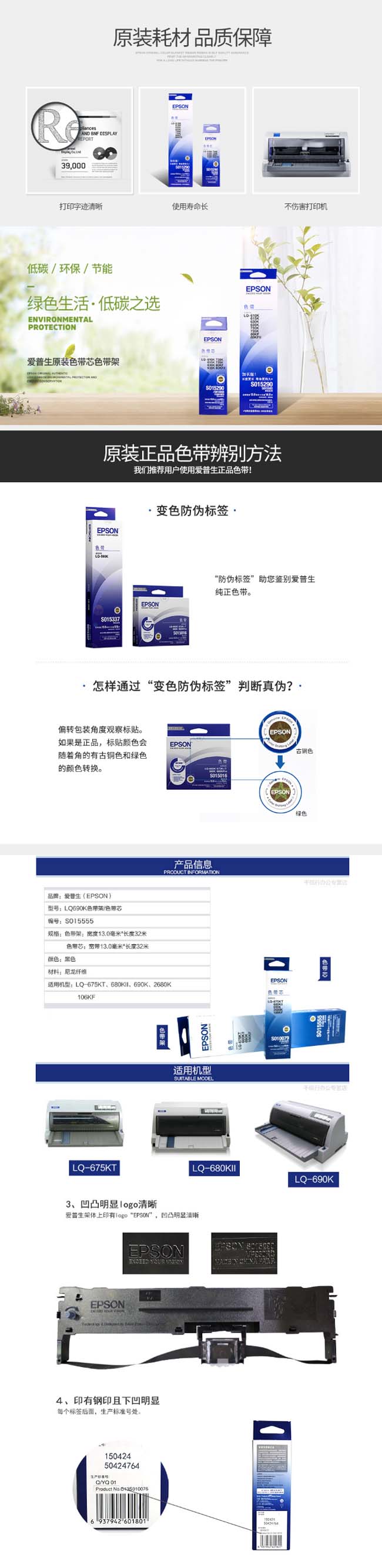 愛普生(EPSON)原裝 LQ-680KII 打印機色帶 S015555 106KF 690K K2 色帶架(含芯裝機即用 安裝簡單)