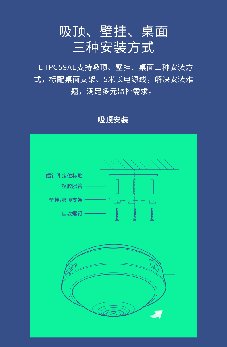 TP-LINK 1200萬(wàn)魚眼無(wú)線監(jiān)控?cái)z像頭 360度全景超清紅外夜視wifi手機(jī)遠(yuǎn)程雙向語(yǔ)音 智能網(wǎng)絡(luò)攝像機(jī)TL-IPC59AE